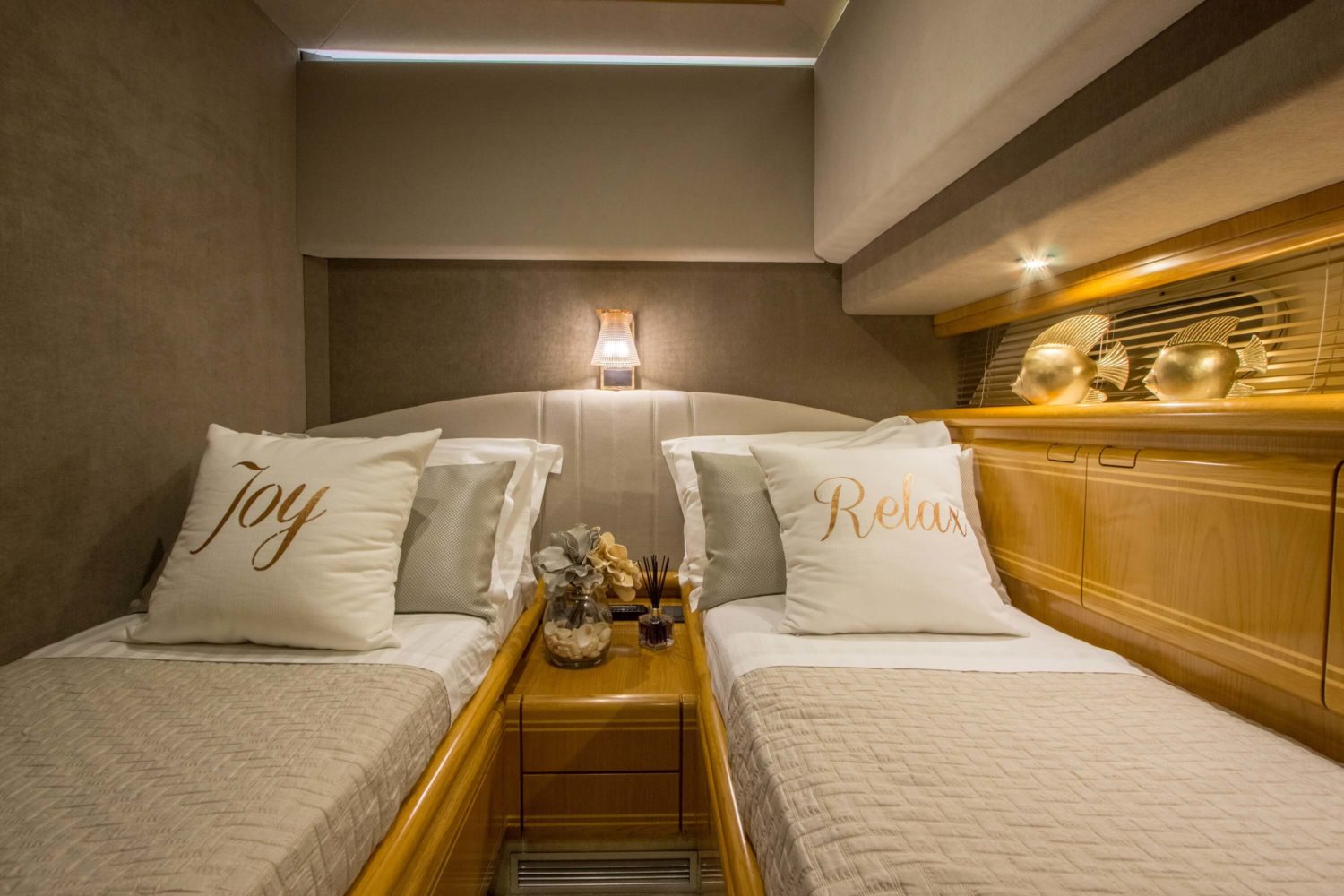 Vento comfortably sleeps up to 10 guests in 4 staterooms, including an impressive full beam Master cabin, one VIP cabin and two twin cabins. The two twin cabins can be convertible upon request. She is also equipped with a variety of toys, such as a Jet Ski 2 seater Sea Doo 4,20m Tender with 40hp engine.